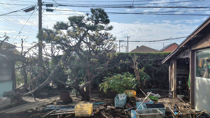 埼玉県三郷市にある由緒ある旧家にて、庭木の剪定作業を行いました。特に、先代のご主人がこだわり抜いて整えた松をはじめとする日本庭園の剪定ということで、造園職人としての腕の見せどころとなる現場でした。